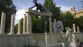 Das umstrittene Besatzungsdenkmal auf dem Budapester Freiheitsplatz steht. Nach monatelangen Protesten ist es am Wochenende in einer Nacht und Nebelaktion aufgestellt worden. Polizeieinheiten riegelten den Platz weiträumig ab, Zäune sicherten die Bauarbeiten.