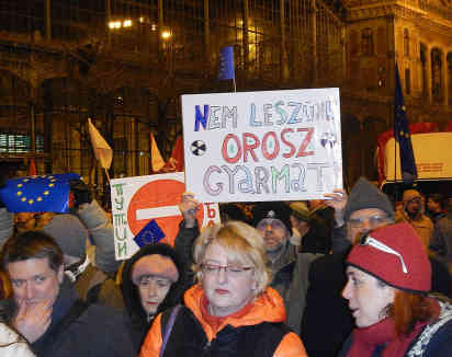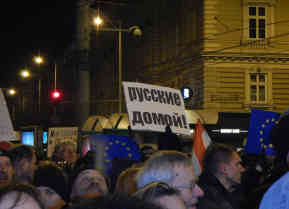 Demonstration gegen den Putin Besuch in Budapest.