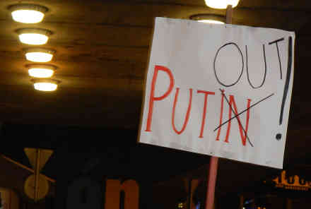 tausend Menschen am Abend vor dem Putin-Besuch bei ihrem