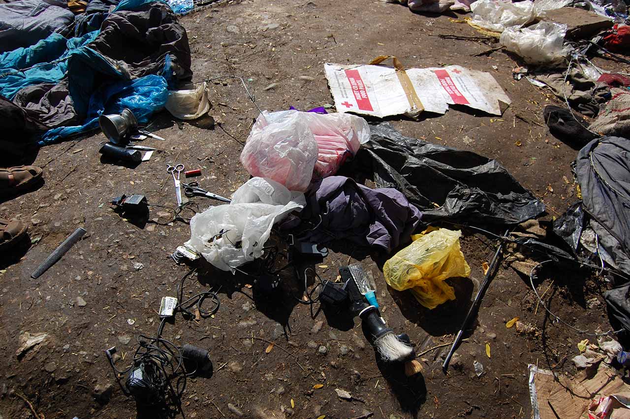 Am Stacheldraht-Zaun an der Grenze zu Griechenland schieben Bagger das zusammen, was die Flüchtlinge zurück lassen: Schmutzige Schlafsäcke und Regen-Capes, leere Plastikflaschen, Windeln, Einmann-Zelte, Decken, sogar Rasierzeug – alles Ballast auf dem weiteren Weg.