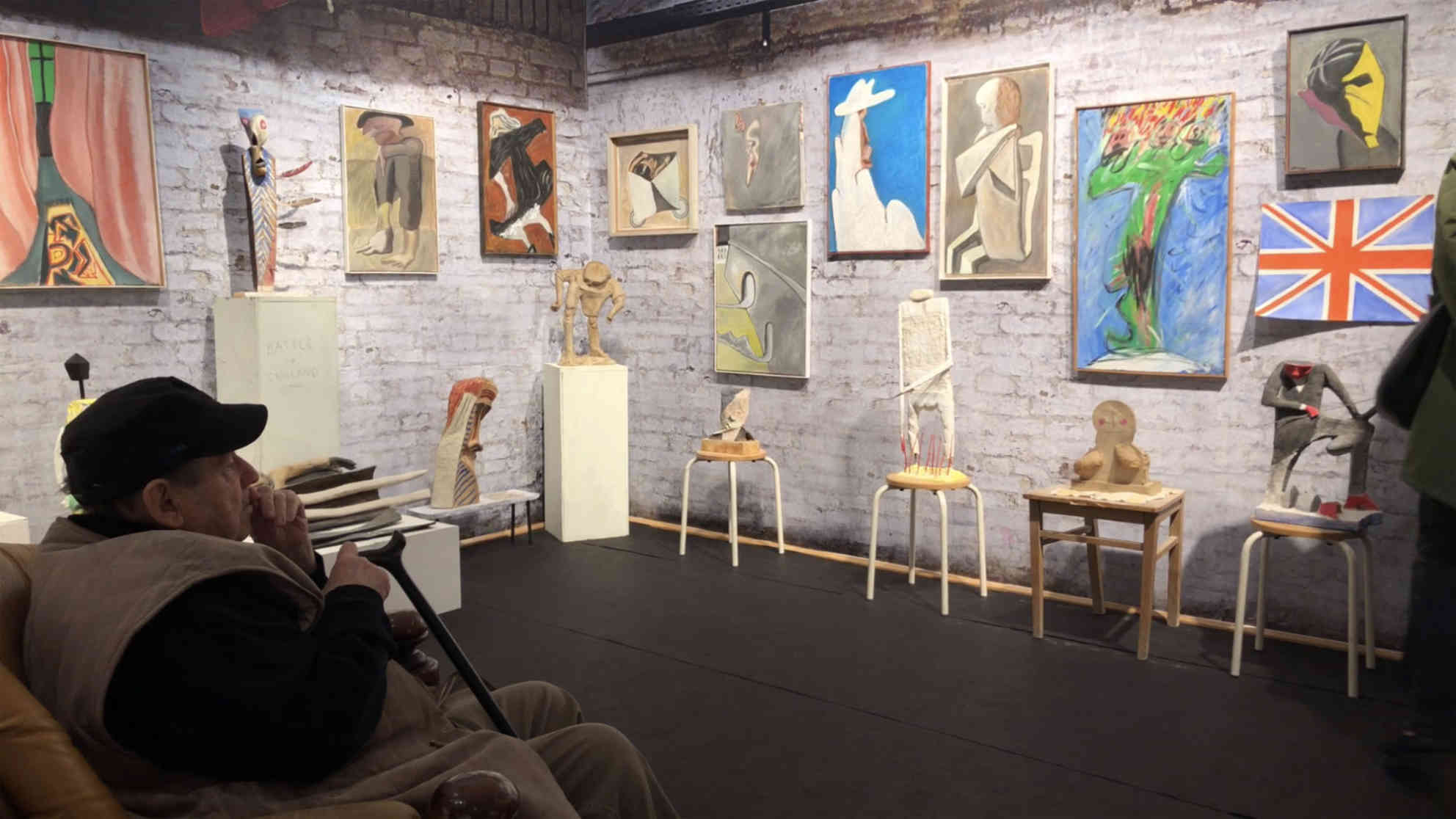 Zart streichelt seine Frau Friederike ihm über die Wange. Kurt Hüpfner lächelt. Das Ehepaar ist seit 1972 verheiratet. „Ohne sie hätte ich nicht leben können – ich habe von ihrer Unterstützung gelebt.“ Und seine Frau ergänzt: „Es waren – wie überall – Höhen und Tiefen dabei.“ Sie im Trenchcoat, er mit Haube und Weste. Kurt Hüpfner, ein 89-Jähriger, sitzt mit Gehstock auf der schlammfarbenen Couch inmitten des Palais´ Kinsky im ersten Wiener Gemeindebezirk. Hüpfners Atelier wurde mit persönlichen Möbeln und Objekten bis hin zu eigenen Bleistiften nachgebaut. Sogar die Tapete gibt die Ziegelmauer des Ateliers wider.