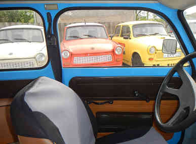 Jetzt, 32 Jahre später, habe ich mich wieder in einen Trabi hineingesetzt. Es war das erste Mal, dass ich selbst einen PVC-Jaguar fuhr. Einen blauen, natürlich. Aber dazu später mehr.