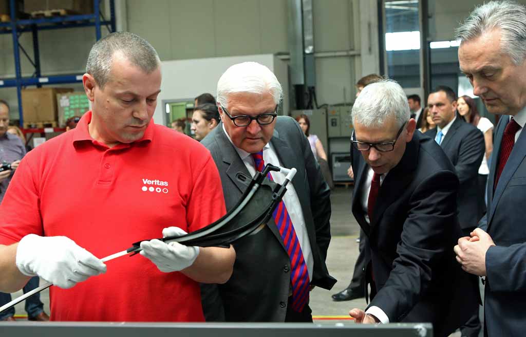 Seit 2011 produziert die Firma Veritas an ihrem Standort in Rajlovac, am Stadtrand von Sarajevo Teile für die deutsche Autoindustrie, vor allem Leitungen, die den Sprit vom Tank in den Motor bringen. Kunden sind Volkswagen, Daimler-Benz und BMW. Das Unternehmen gilt als Vorzeigebetrieb, sogar Bundesaußenminister Steinmeier war kürzlich zu Besuch, als er nach Sarajevo kam.