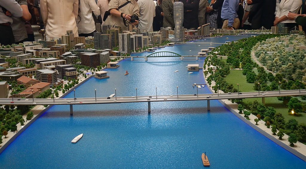 Model-Belgrade-Waterfront-Stefanovic1“Belgrade Waterfront” wird sich auf einer Fläche von 100 Hektar am Save-Fluss (Save Amphitheater) erstrecken. Auf etwa 2 Mio. Quadratmetern werden Wohn-, Gewerbe- und Büroflächen entstehen, der arabische Investor „Eagle Hills“ will insgesamt etwa 4 Milliarden Dollar investieren. Laut Projekteiter Srdjan Rupar soll in Belgrad das künftige Geschäfts- und Tourismuszentrum Südosteuropas entstehen.